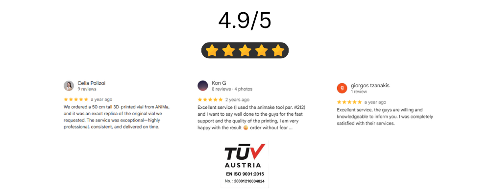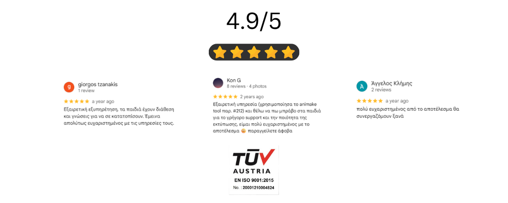 Οι αξιολογήσεις τους αντικατοπτρίζουν τη δέσμευση μας για ποιότητα, ακρίβεια και αξιόπιστες υπηρεσίες 3D εκτύπωσης.